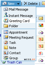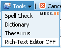 I'm not entirely sure, but I reckon the New pulldown menu shows a new option to send e-cards from AmericanGreetings.com. Same doubt over the novelty of a few fresh e-mail editing tools: Spell Check, Dictionary and Thesaurus. (UPDATE: According to messer Roy, these features are dead-old... sorry :p)