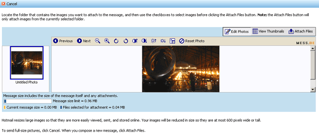 "Customers can now send digital photos in Hotmail with a simple process of selecting and sending the photos. They can attach multiple photos to a message at the same time, and edit images within Hotmail."