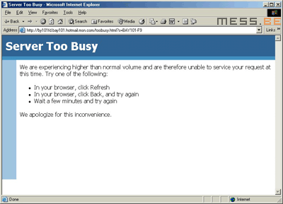 - Bean sent us a screenshot of the new Server Too Busy message, replacing the sober black-text-on-white-background message I got so used to.
