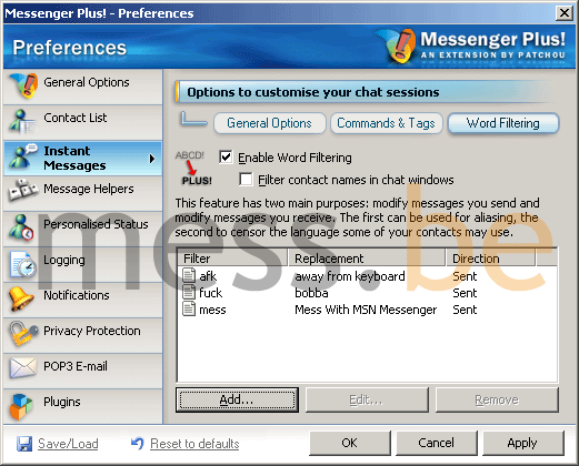 - Microsoft got rid of word censorship in MSN Messenger by disabling the nickname filter, Patchou is the man who brings it back! Word filtering works in both ways: sending & receiving.