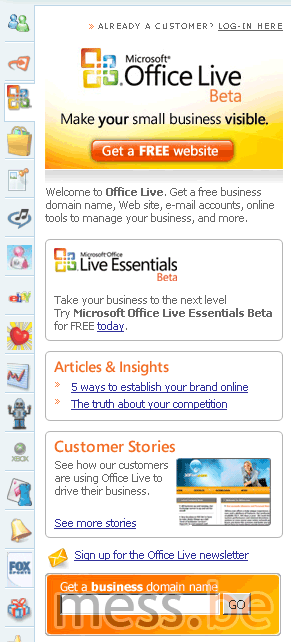 Brandon LeBlanc spotted a new Office Live Beta tab in Messenger two days ago. The tab, which only appears to Passport accounts set to U.S., looks like this. Unfortunately, Brandon nor I were able to test its features.